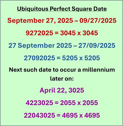 B. E. Inan and A. S. Inan, "Ubiquitous Perfect Square Date: 27 September 2025," September 27, 2025.