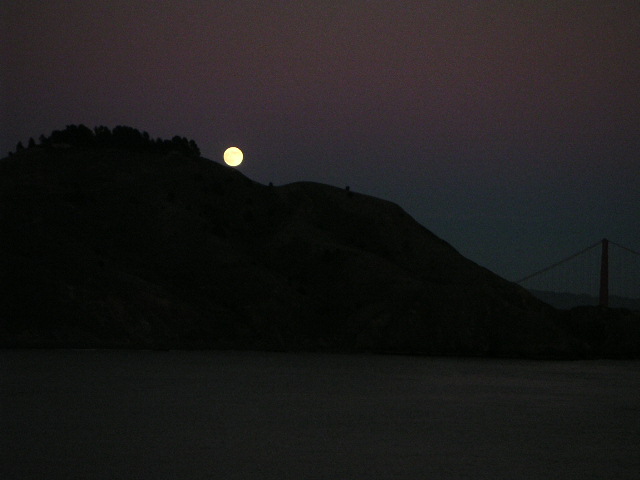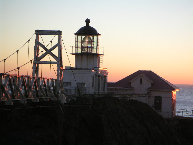 Sunset at Pt Bonita Lighthouse and Full Moon rising over the Headlands from Pt Bonita