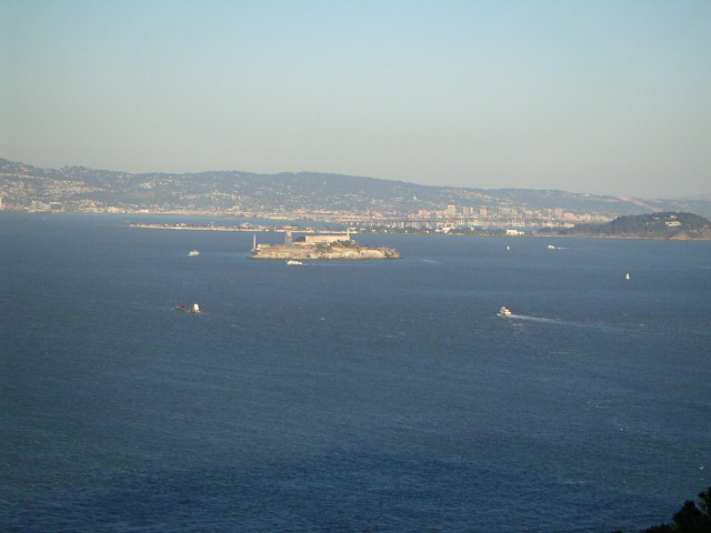 Alcatraz Island and the San Francisco skyline from the top of the path behind the house